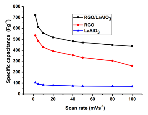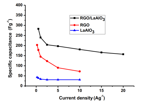 3納米復合材料也已被制造用于不對稱超級電容器器件(ASD)系統。根據電化學阻抗譜(EIS),RGO/LaAlO