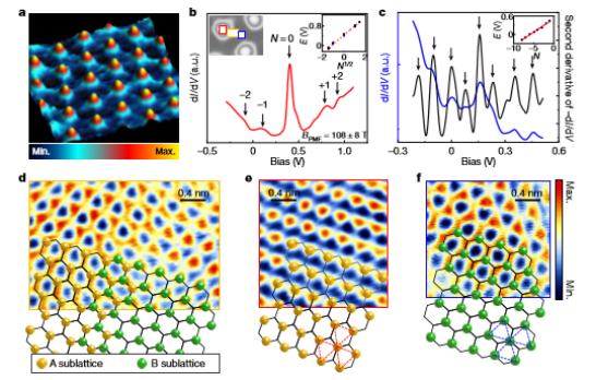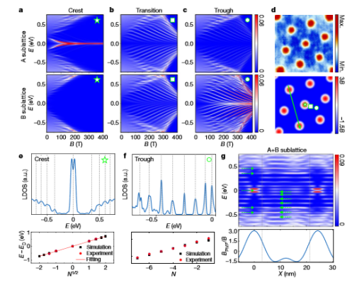 Fig. 2 彎曲石墨烯中的偽朗道能級量子化和亞晶格極化。