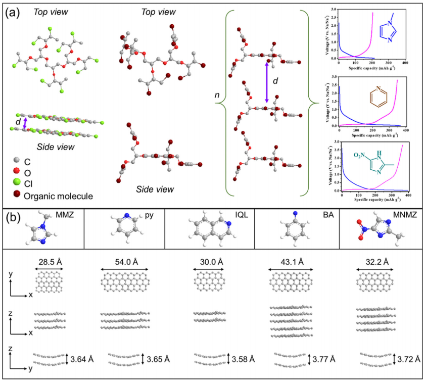· 當(dāng) d>0.38 nm 時:鈉離子以吸附為主,平臺容量占比<40%;